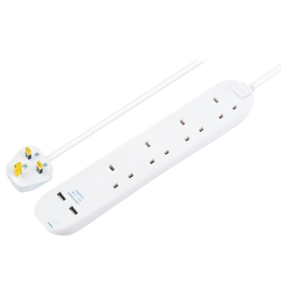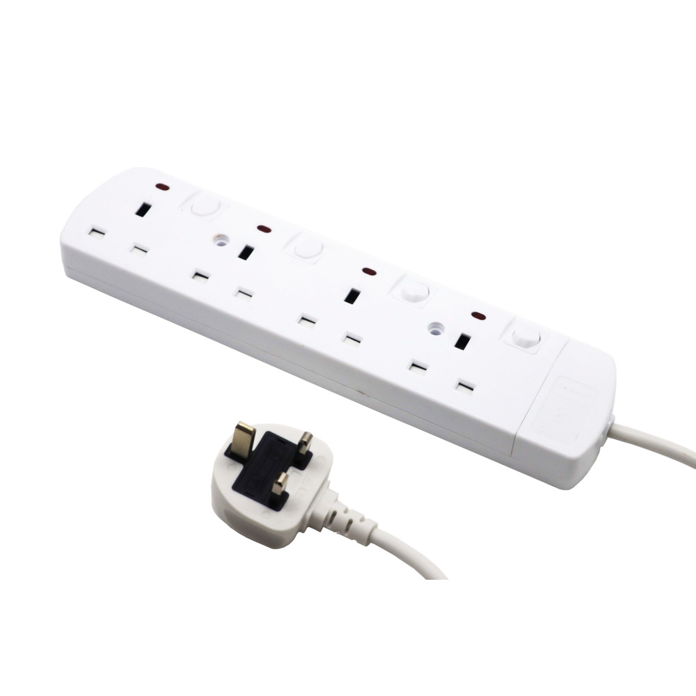 Securlec 6 Gang Extension Lead 2m Surge Protection 13Amp Independently Swtiched Sockets