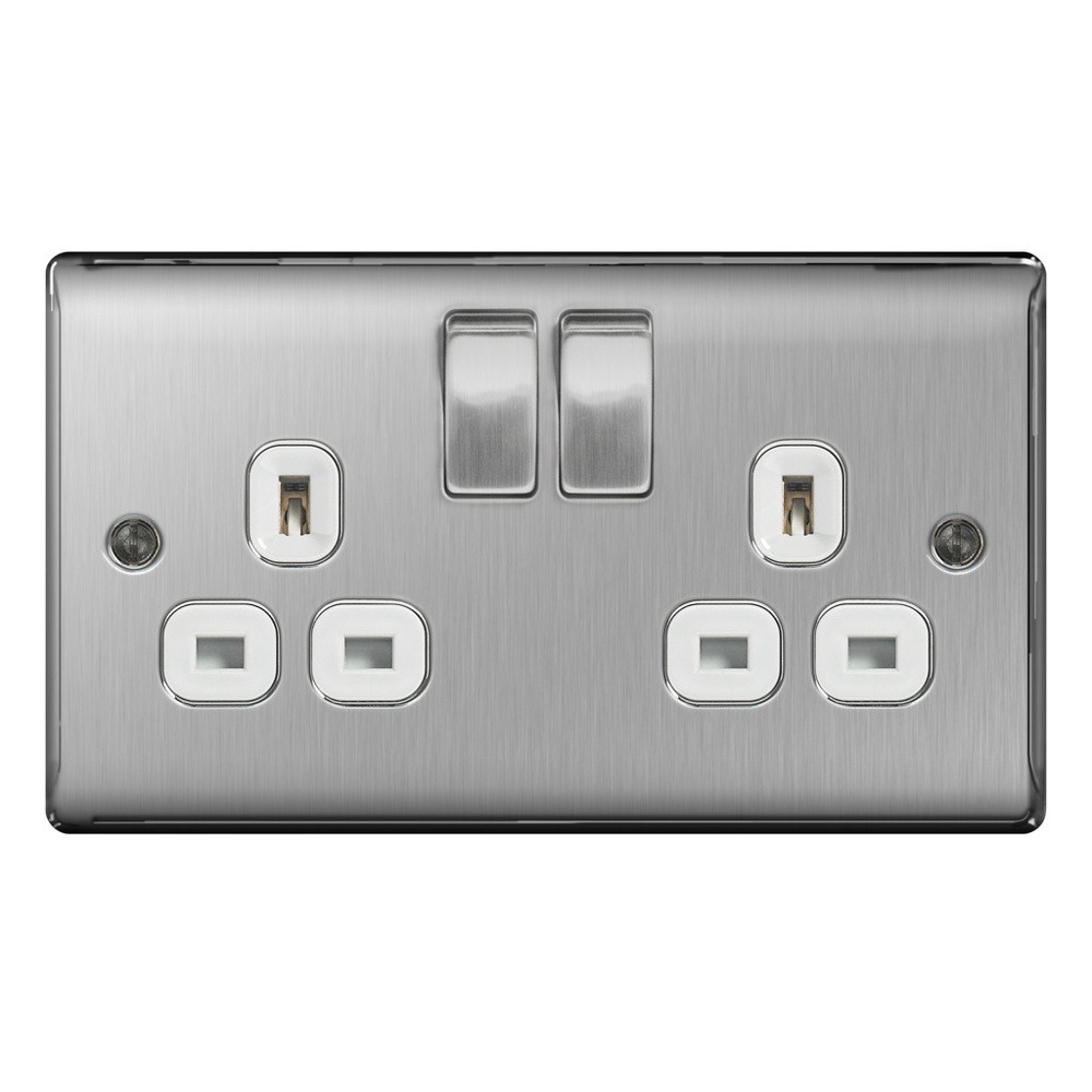 BG 13a 2 Gang Switch Socket Brushed Steel With Black Inserts