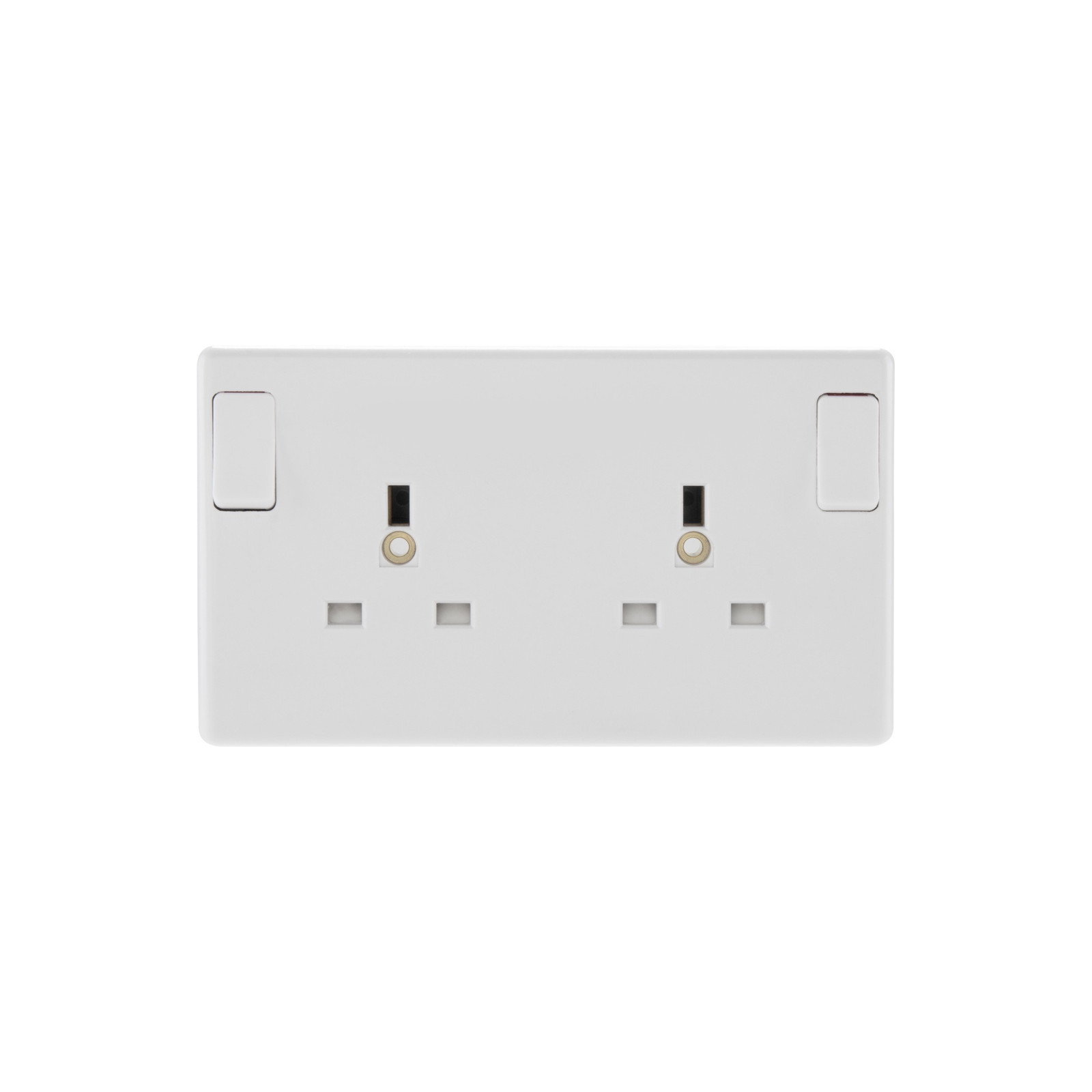 BG 2 Gang White Round Edge Single Pole Switched Socket 13a