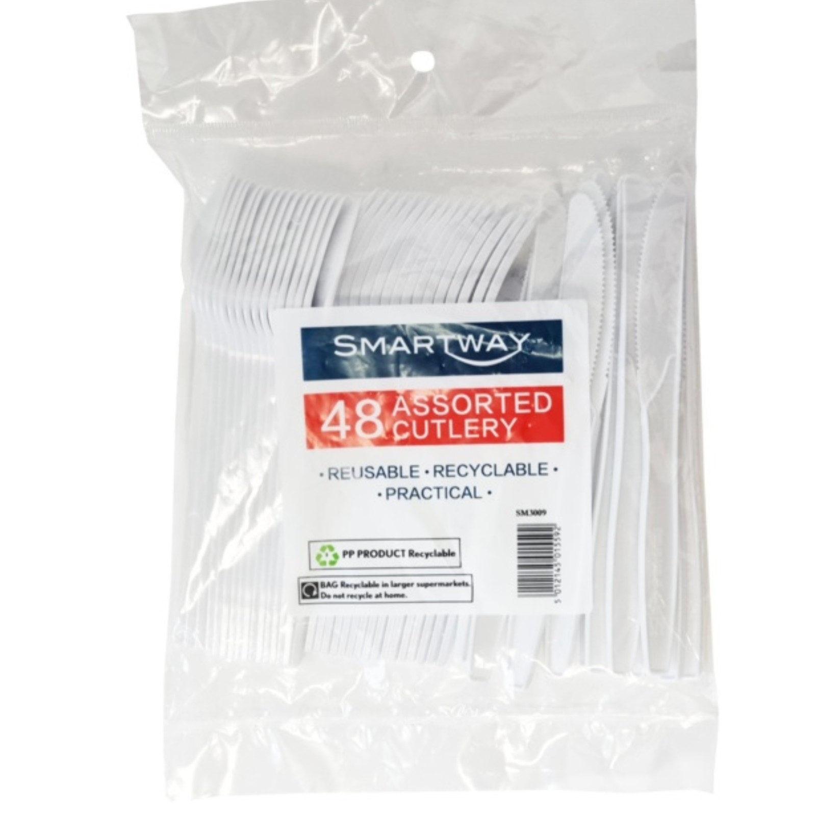 Perfect for any occasion, the Smartway Assorted Cutlery Pack offers 48 pieces of high-quality plastic cutlery. Designed to be reusable and recyclable, this practical set combines convenience with sustainability. Ideal for parties, picnics, or everyday use, it provides an eco-friendly alternative to single-use cutlery without compromising on durability or style.