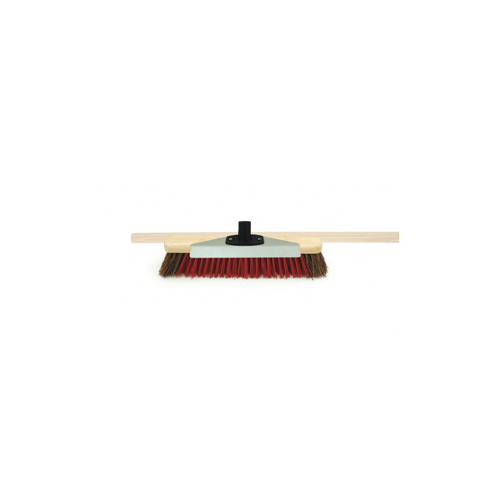 Stiff PVC and natural bassine bristles combined together in one broom head are specifically designed to create the ultimate outdoor broom for the removal of all types of heavy duty debris even including snow and ice