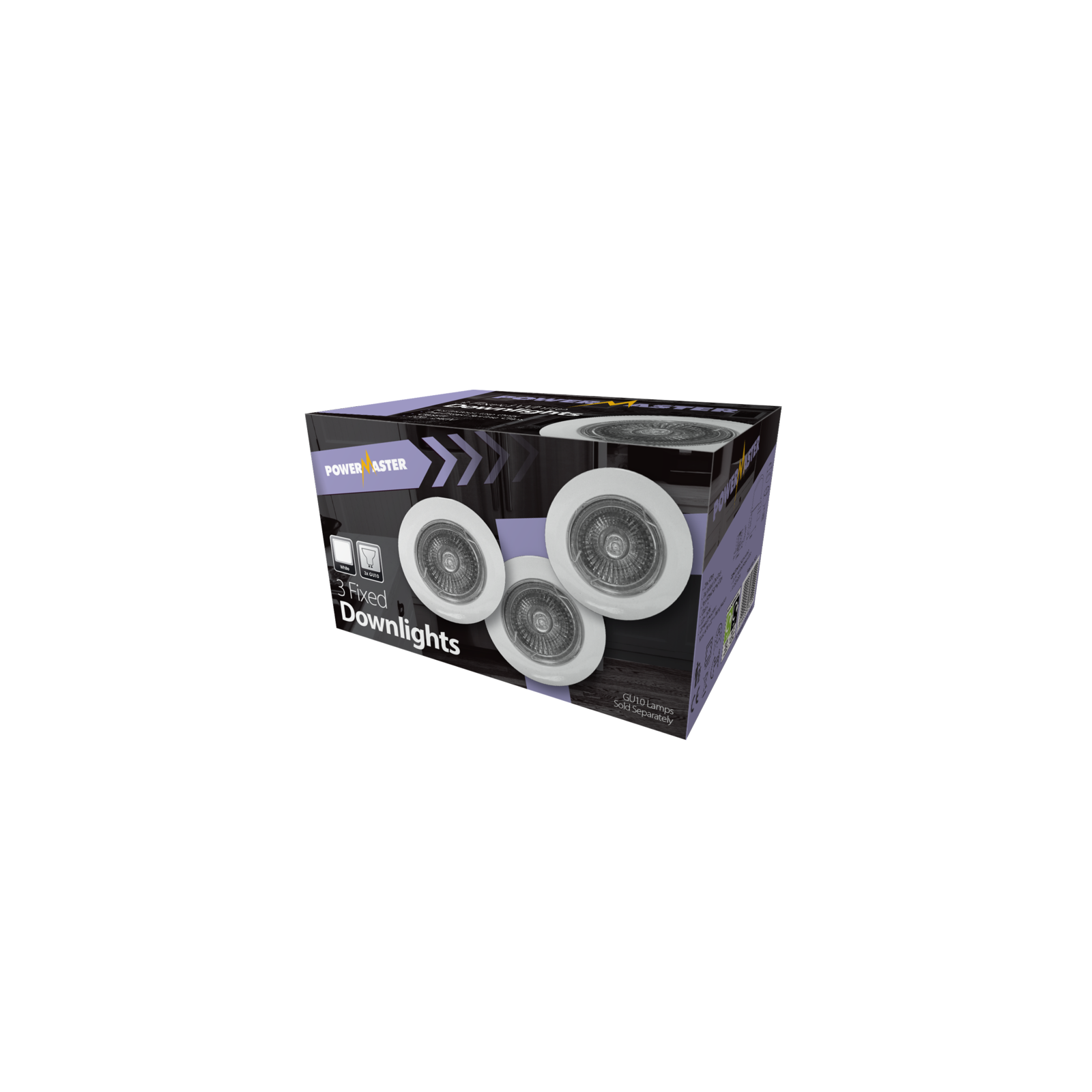 Powermaster 3 Pack Fixed GU10 Downlights White