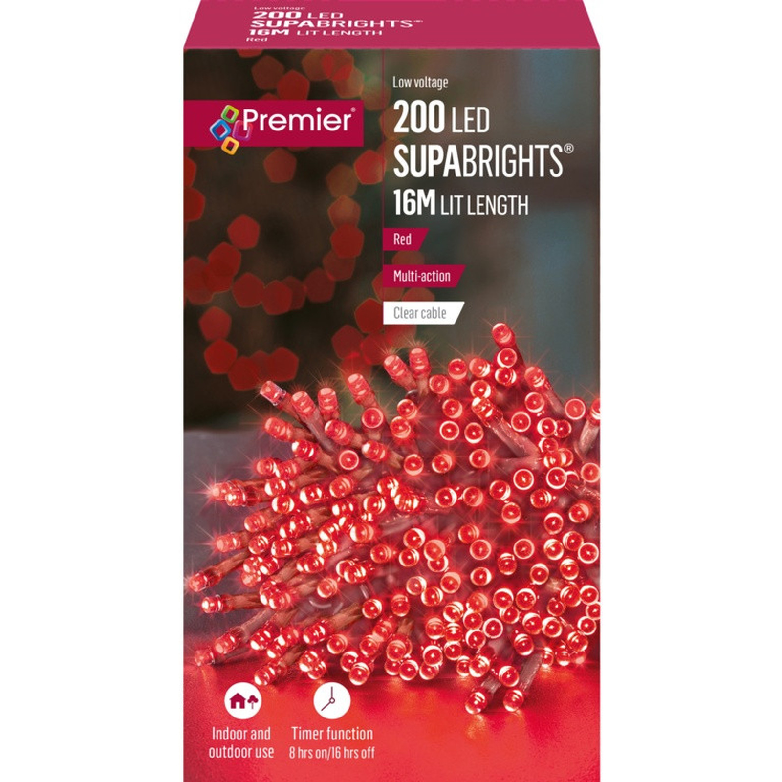 Premier 200 LED Multi Action Supabrights With Timer Red Clear Cable