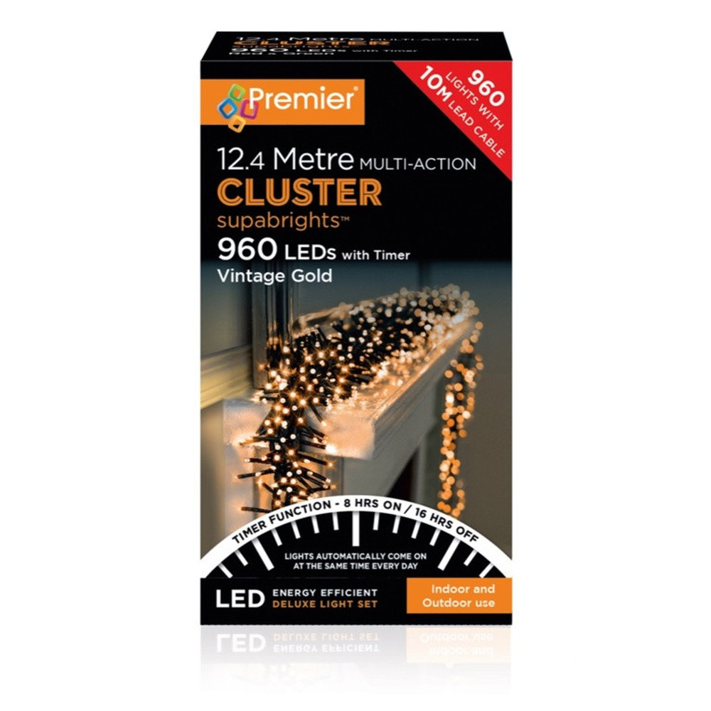 Christmas lights come on at a time of your choosing. Push button timer function: 6 hours on / 18 hours off. Multi-action control unit with 8 light sequences. Waterproof battery box for indoor and outdoor use. Bulb spacing: 10cm, Battery box to first bulb: 0.3m.