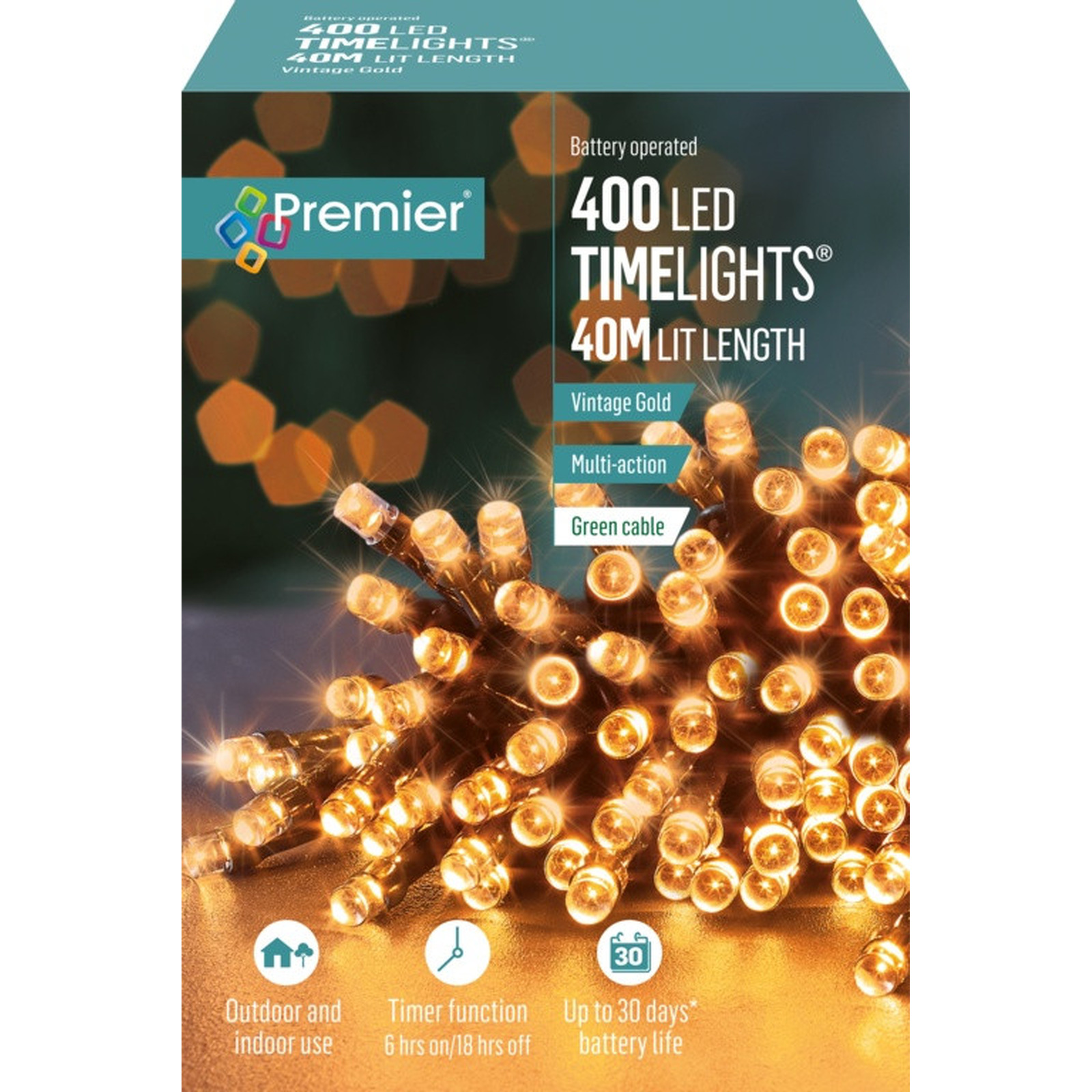 Premier 400 LED Multi Action Battery Operated TIMELIGHTS™ White/Green