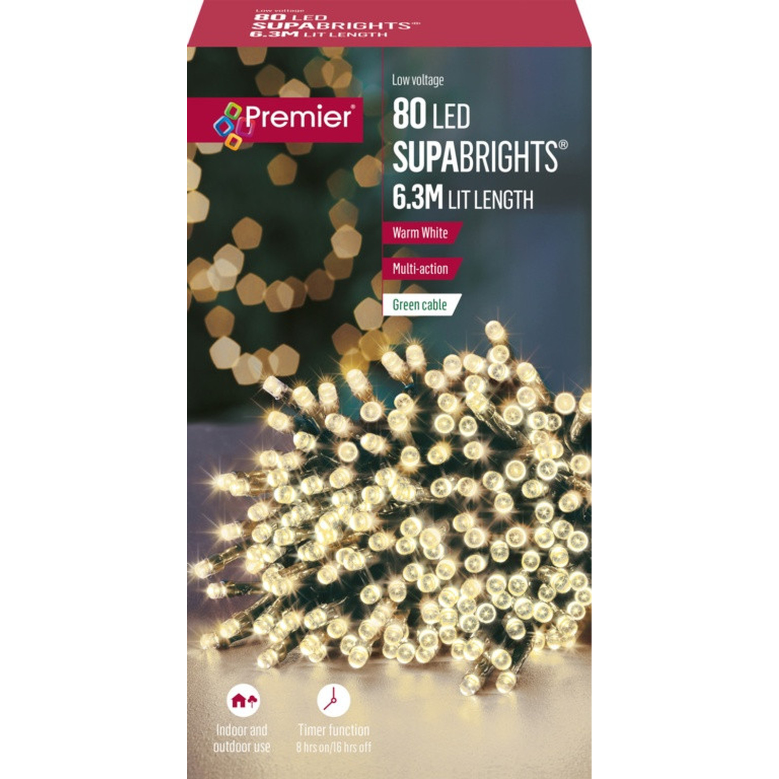 Premier 80 LED Multi Action Supabrights With Timer Warm White/Green Cable