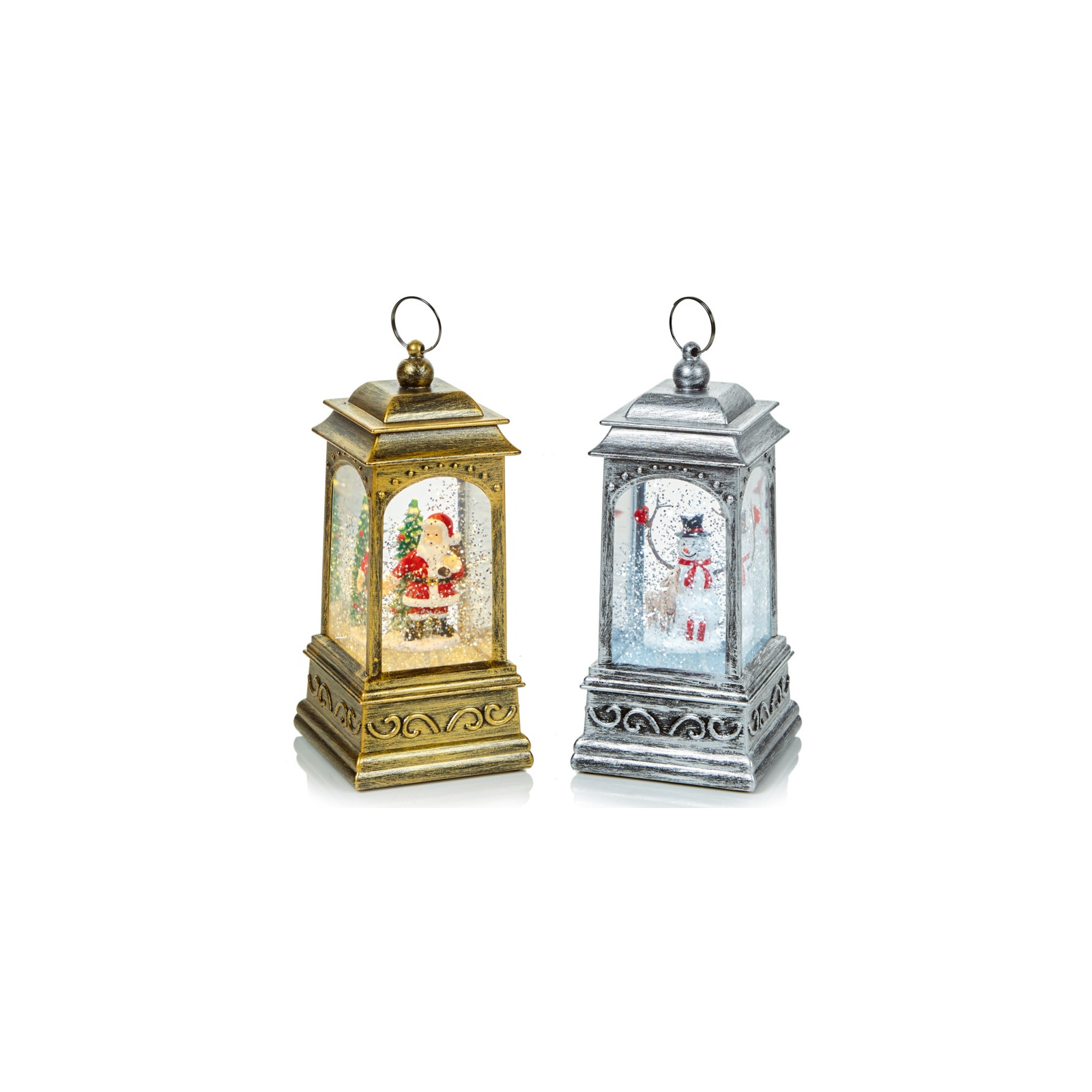 Premier Glitter Spinner Lantern Santa Snowman 21cm.