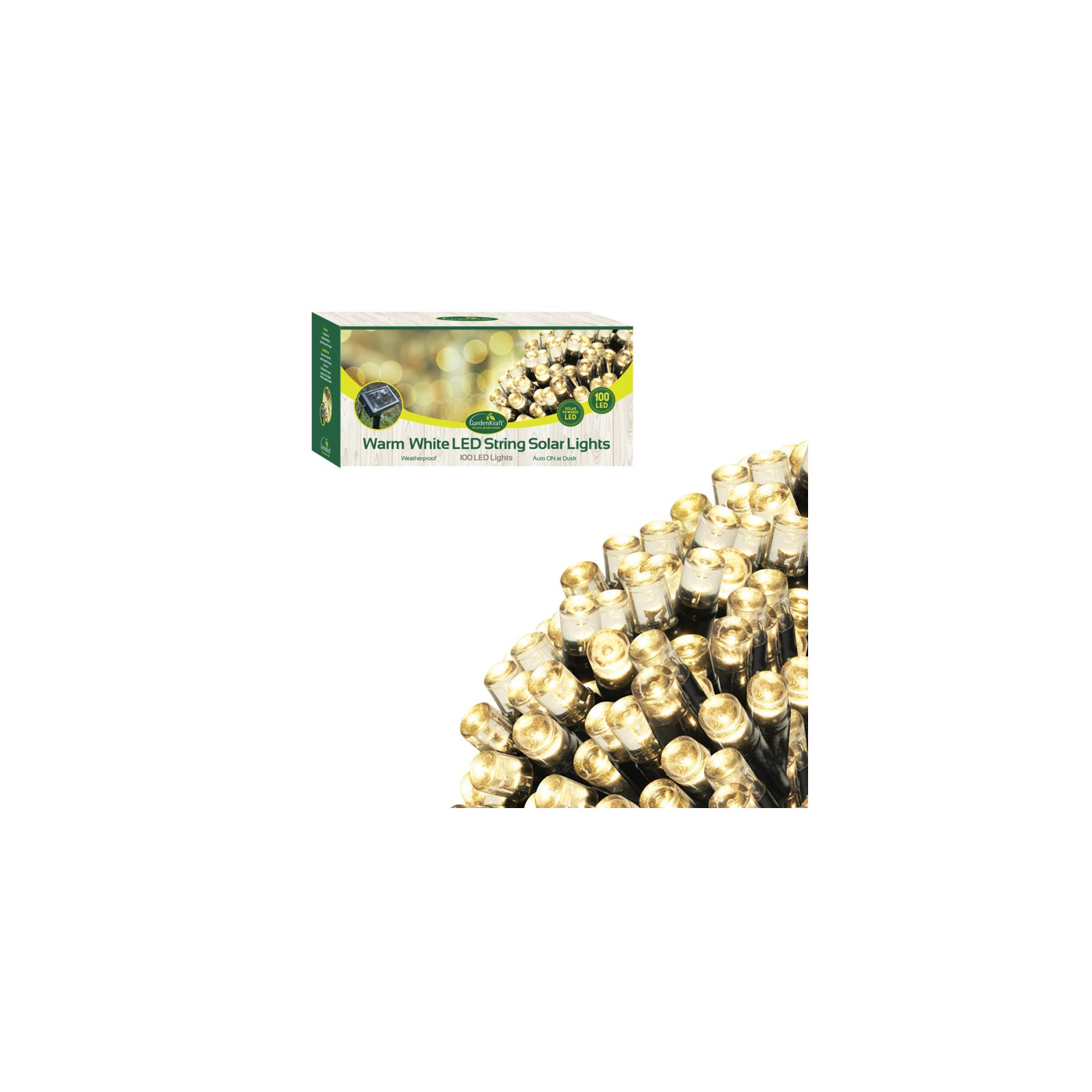 GardenKraft 100 Led Solar String Lights Warm White