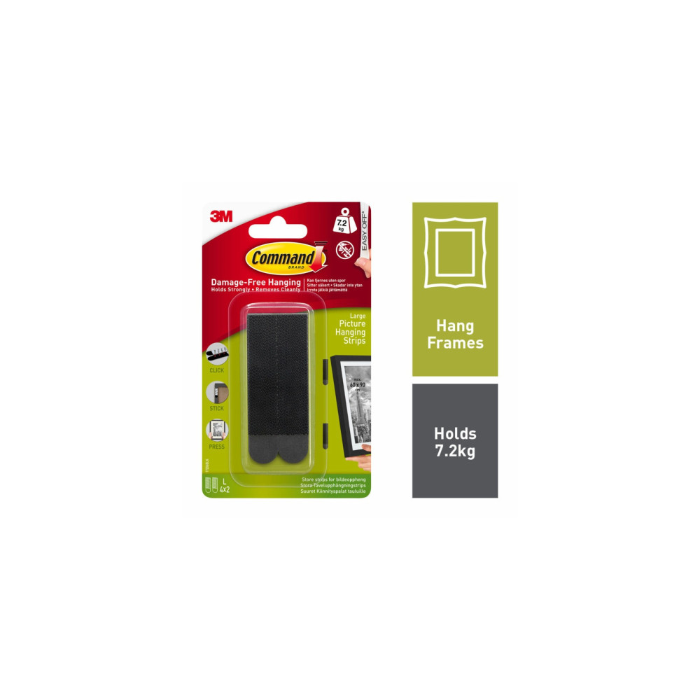 Damage-free hanging, holds strongly and removes cleanly. Easy to apply, no need for nails, screws or drills. Strips stretch off cleanly without leaving holes, marks or sticky residue.