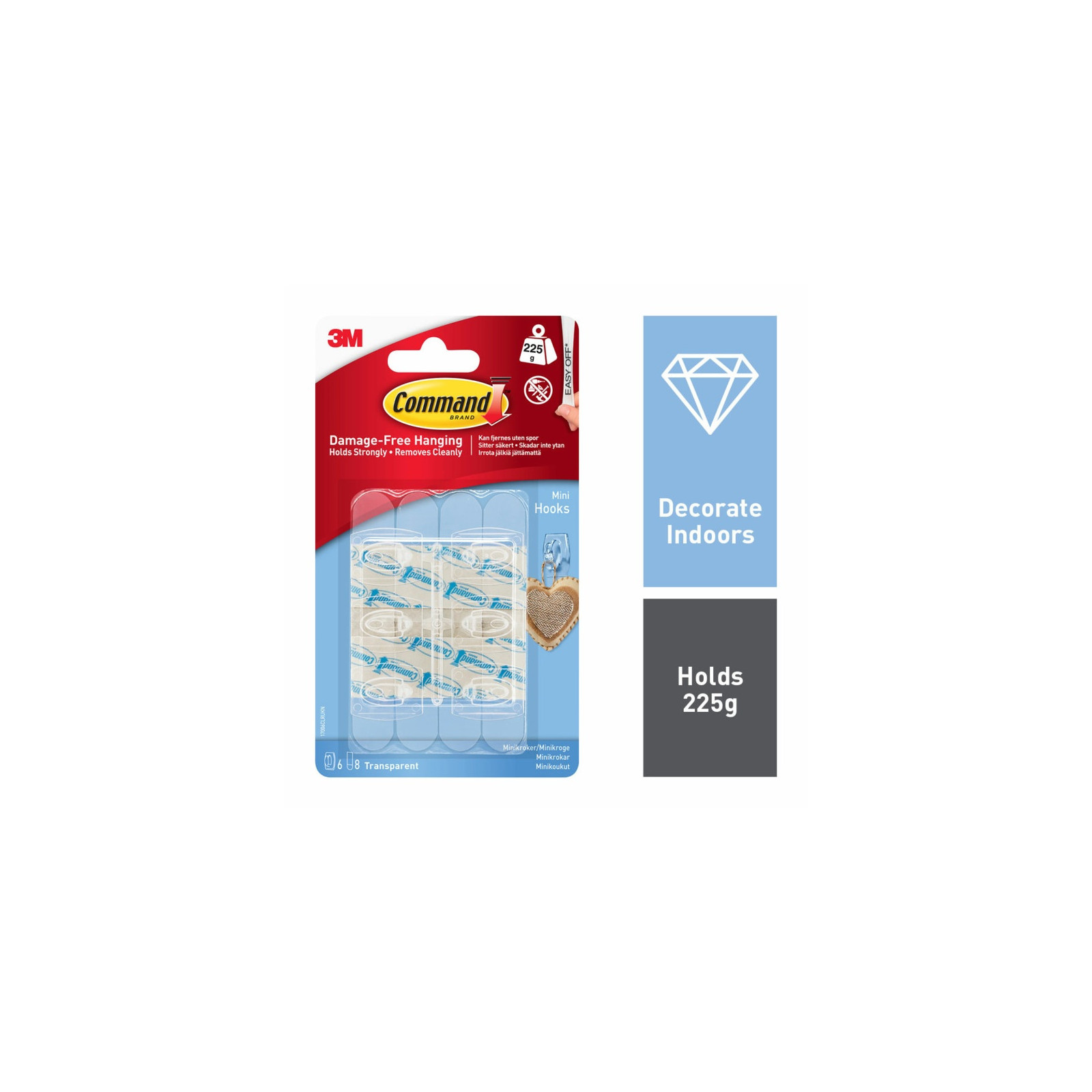 Command Mini Clear Hooks with Clear Strips 6 Hooks, 8 Small Strips