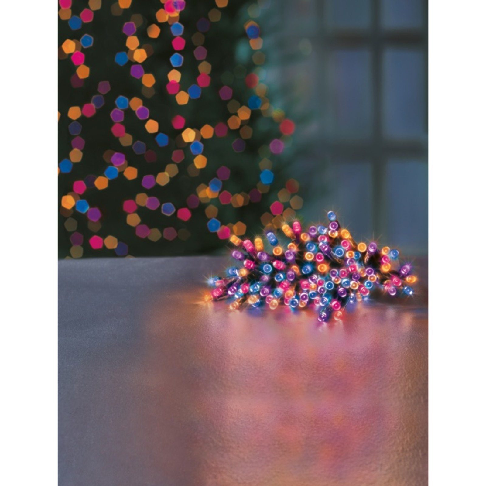 Christmas lights come on at a time of your choosing, Push button timer function: 6 hours on / 18 hours off, Multi-action control unit with 8 light sequences, Waterproof battery box for indoor and outdoor use, Bulb spacing: 10cm, Battery box to first bulb: