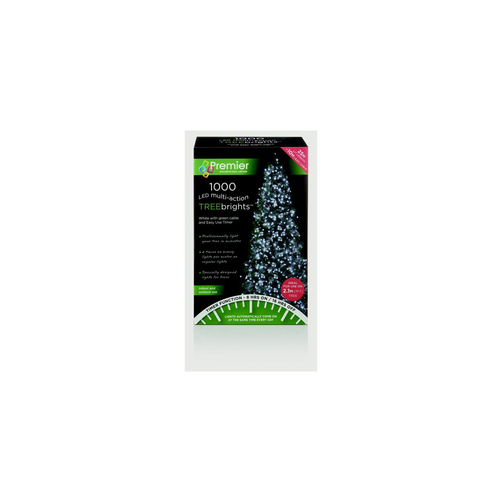 These LED TREEbrights with timer are superbright, energy efficient, long lasting & durable, They can be used indoors or outdoors, Fitted with a multi action electronic controller with 8 functions including static, Easy to use push button timer, press once for lights to activate.