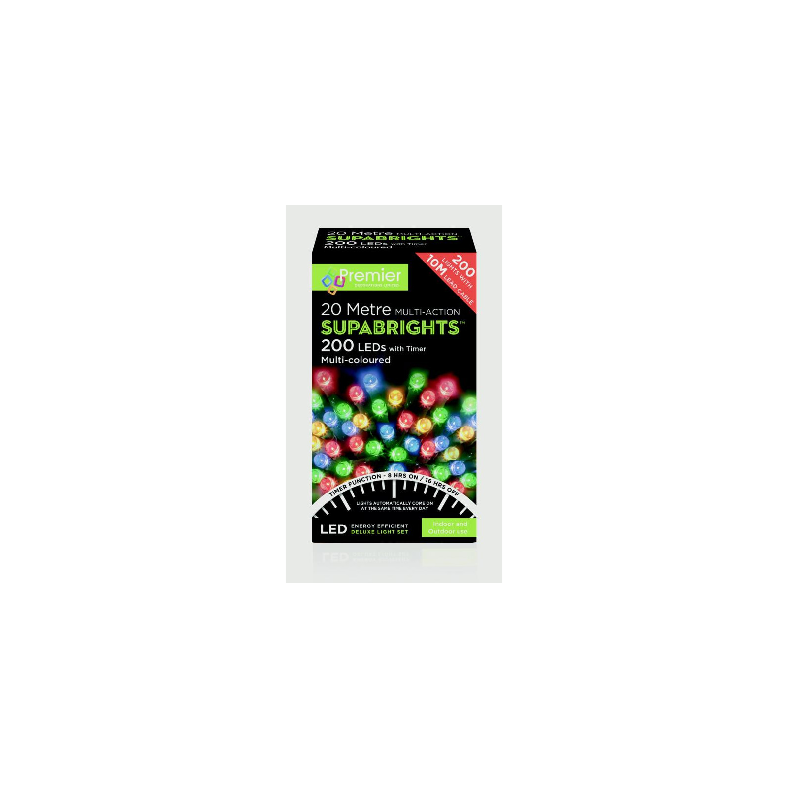 These LED strings with timer are superbright, energy efficient, long lasting & durable,They can be used indoors or outdoors,Fitted with a multi action electronic controller with 8 functions including static,10m cable from transformer to first bulb,Easy to use push button timer, press once for lights to activate