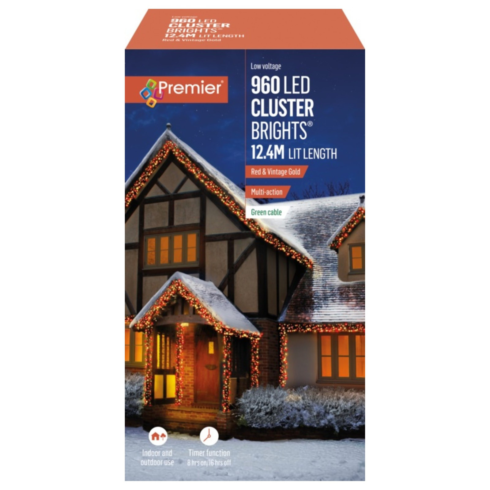 Premier 960 LED Multi Action Cluster Brights With Timer Red & Vintage Gold/Green 10 Functions,8 Hours on, 16 Hours off.