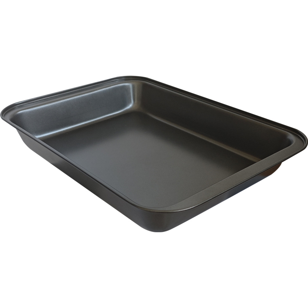 Basiks Non Stick Roasting Tin 14 x 9", Depth:37cm Height:5cm Weight:0.4kg Width:25.5cm.