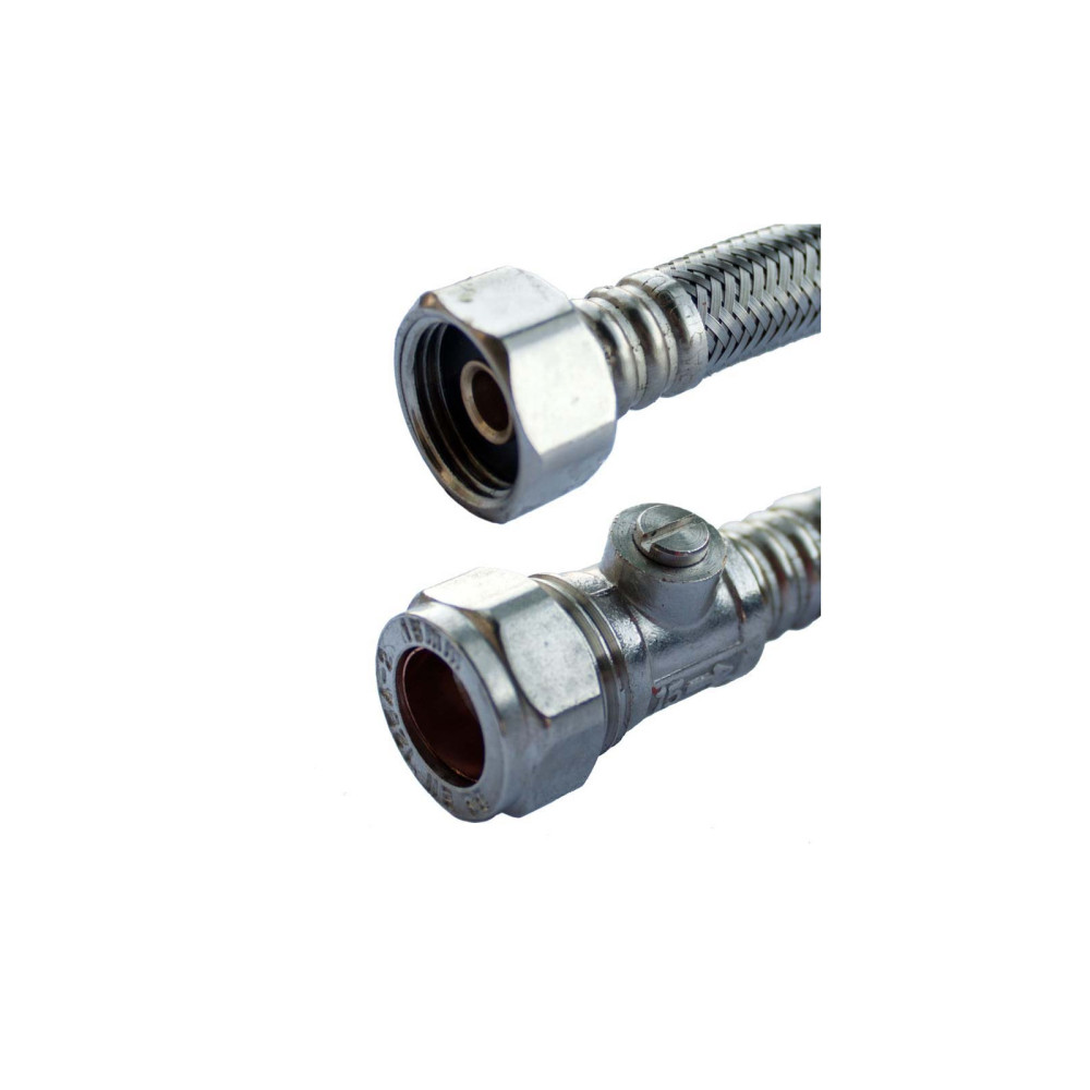 Oracstar Flexi Tap Connector 15mm x 1/2" x 50cm + Iso Valve 9.5mm