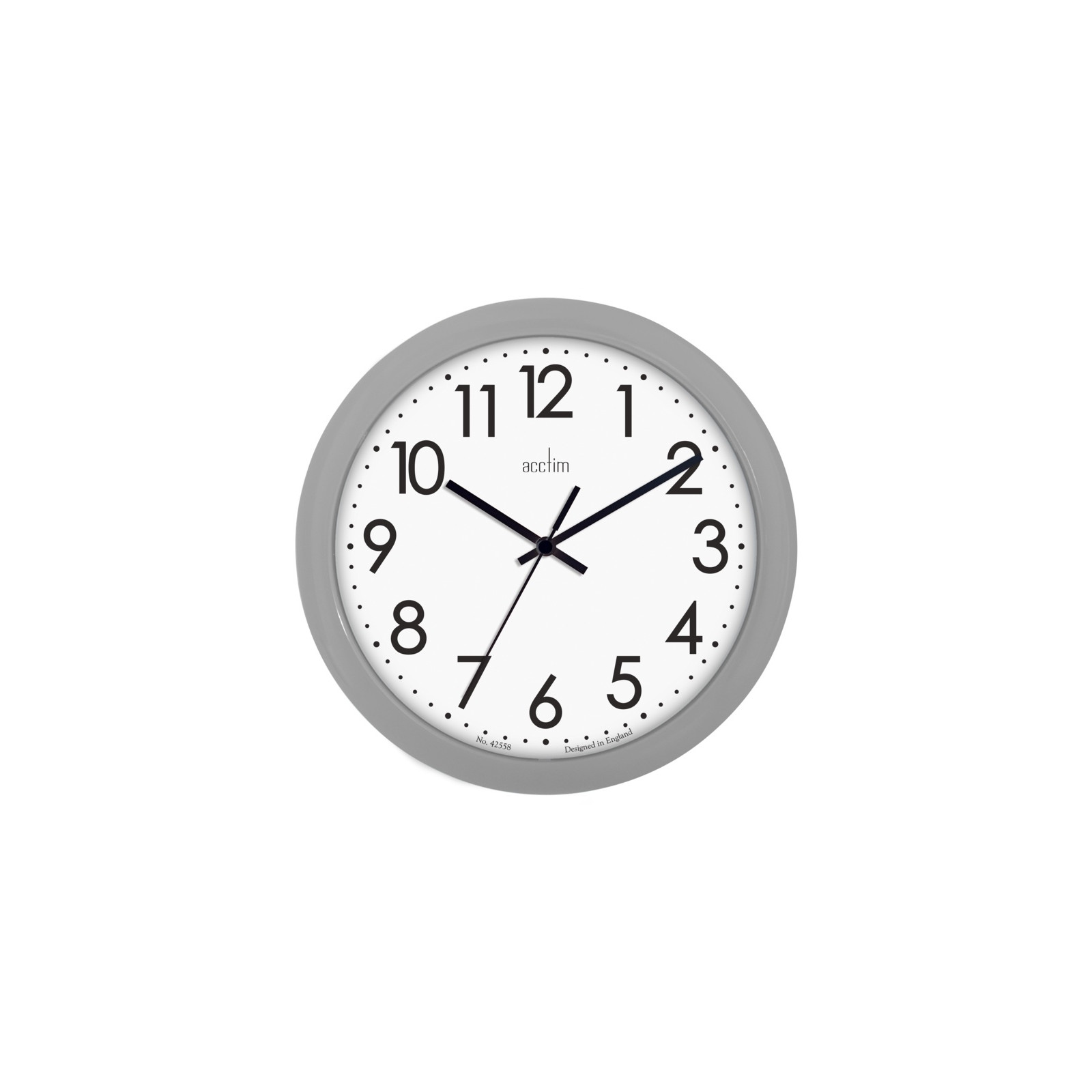 Grey coloured gloss finish plastic case & lens. White dial with black Arabic numbers. Quartz movement, Requires 1 X AA battery (not included).