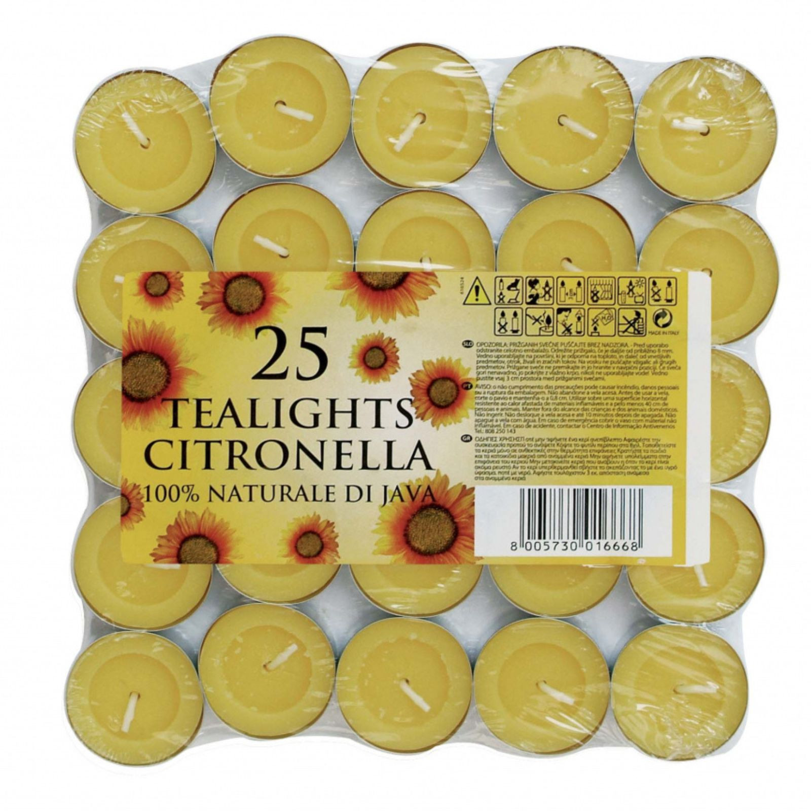 Price’s Candles citronella tealights pack of 25 are scented with high quality citronella fragrance, for outdoor use. Perfect when dining outside during summer. Dot these around the dinner table and garden path for a great effect. Each Tealight Burns for up to 5 Hours