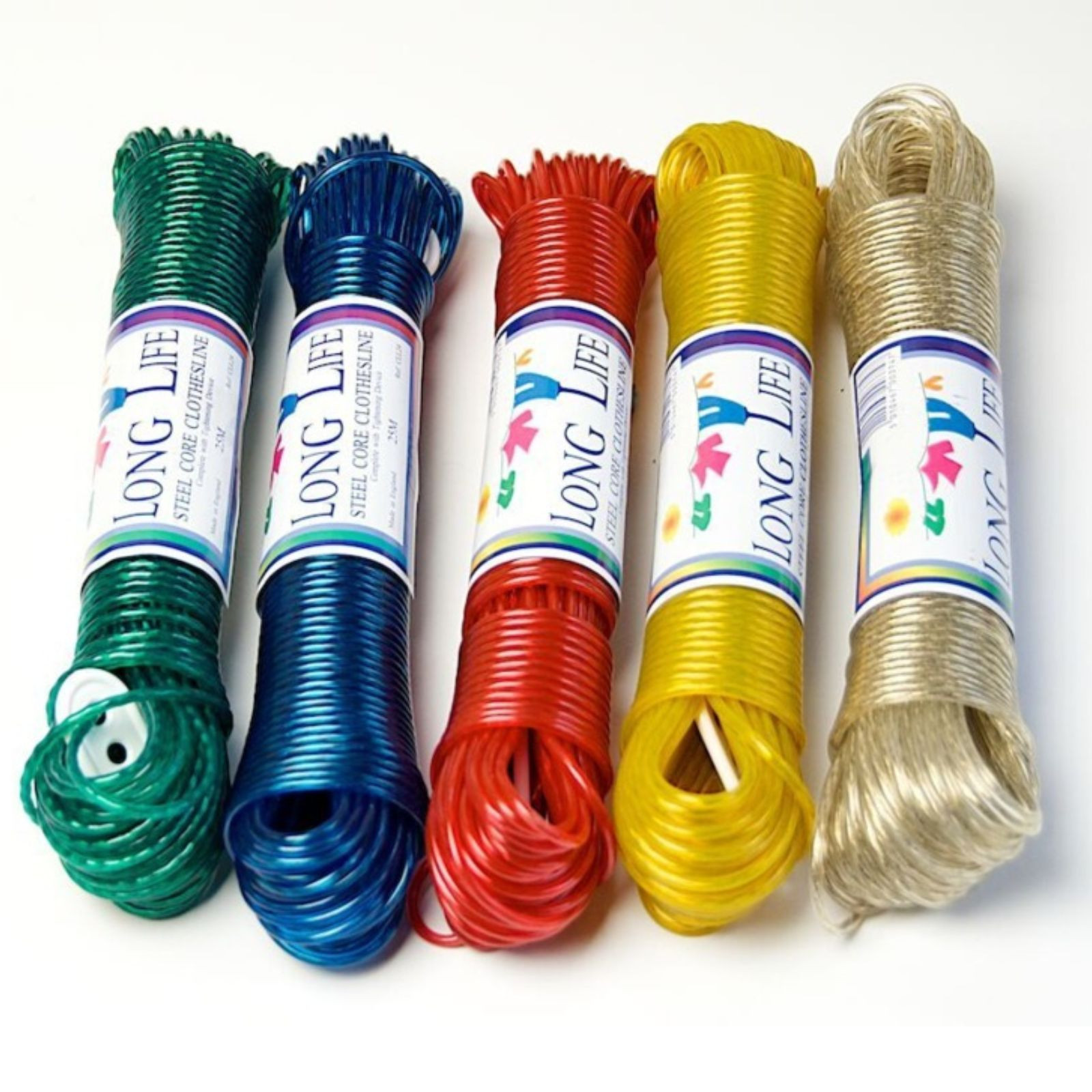 - Hard wearing clothes lines with steel core for strength and wipe clean PVC outer