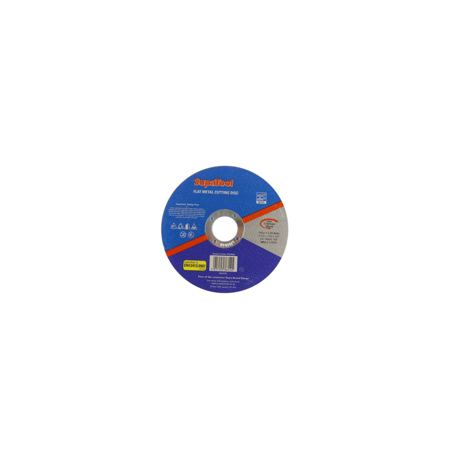 SupaTool Flat Metal Cutting Disc 115mmx1mm