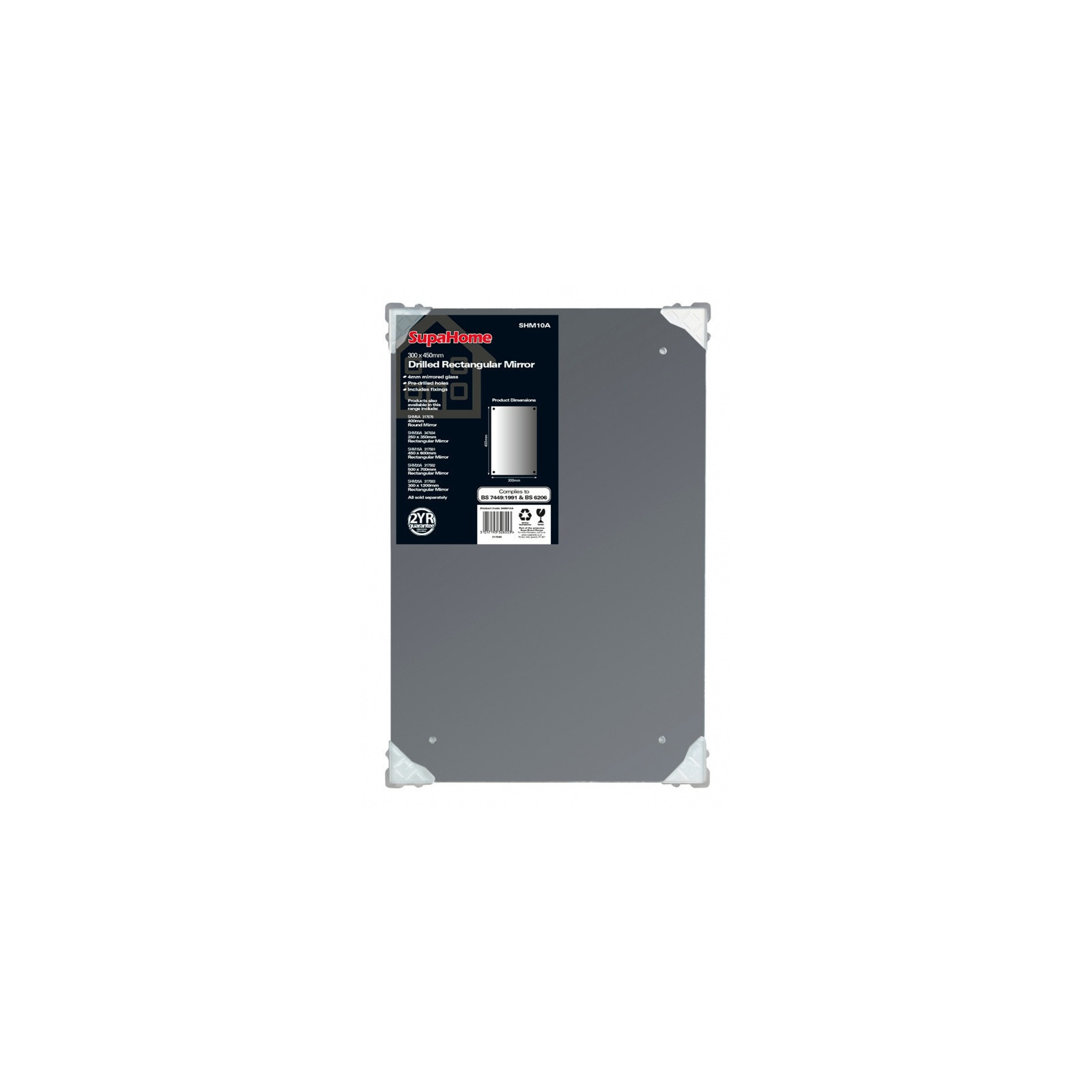 SupaHome Drilled Rectangular Mirror 300x450mm