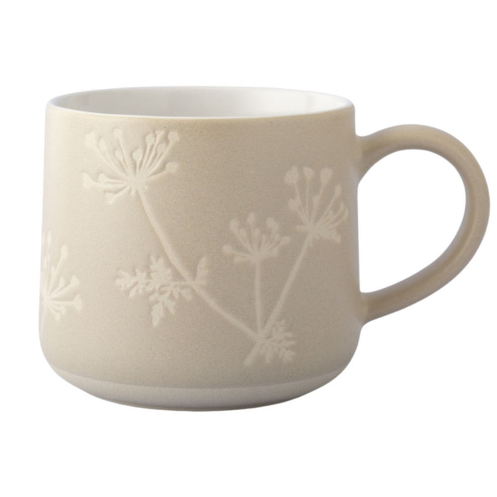 - The Botanical Mug is finished with wax resist floral design of Gypsophila's, in a matt finish glaze.