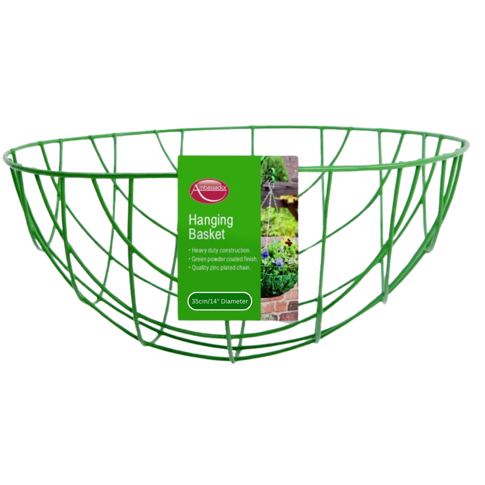 The Ambassador hanging basket is a tough powder coated steel constructed with quality zinc plated chain. Heavy-duty construction, Size: 35cm/14" diameter.