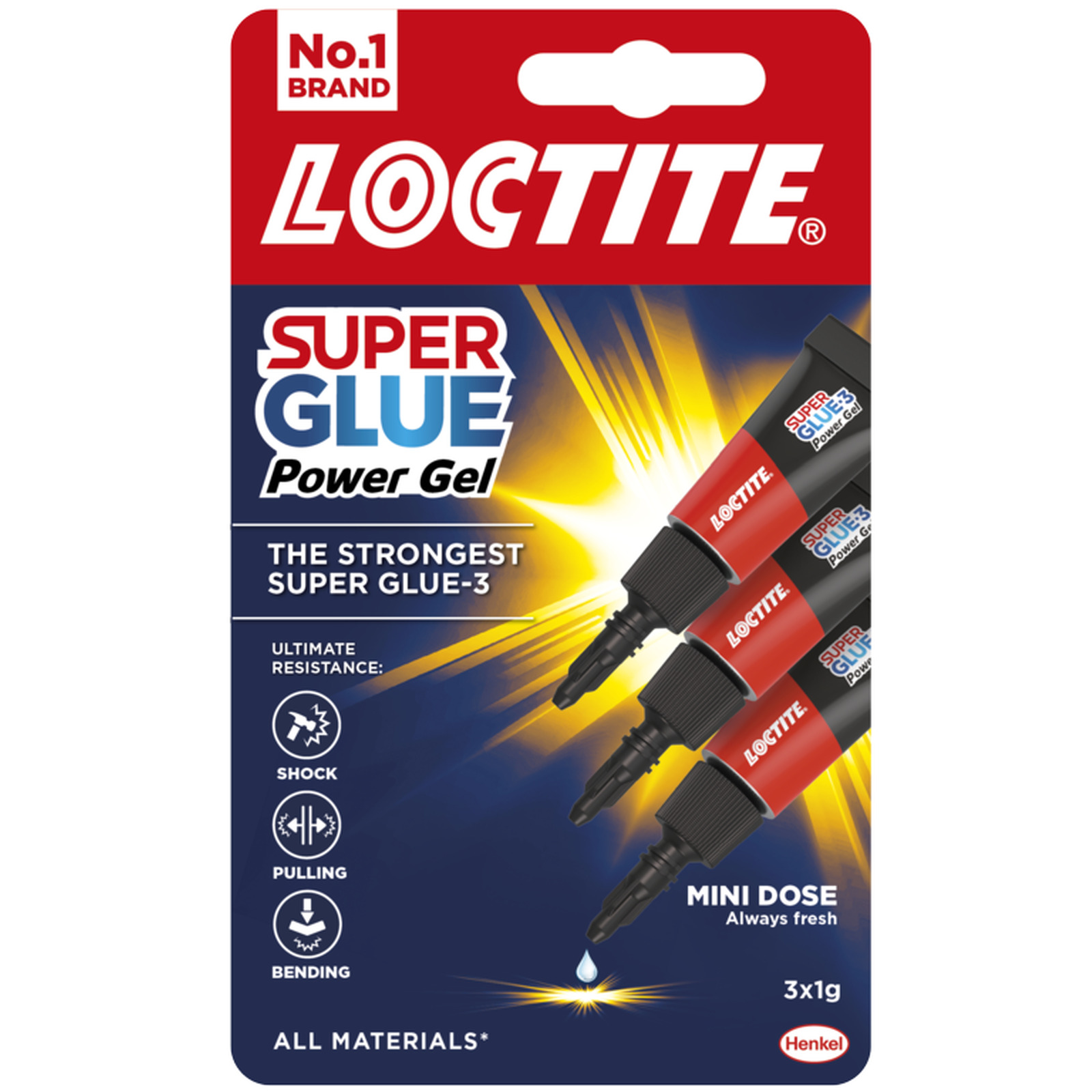 Loctite Super Glue Power Gel Mini Trio 3 x 1g - Transparent & Multi Material