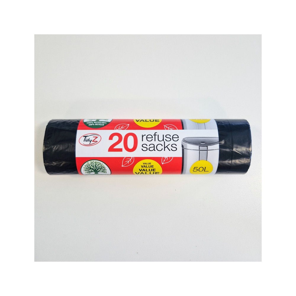 Tidyz Extra Strong Refuse 50L Tie Handles roll of 10 Bin Bags