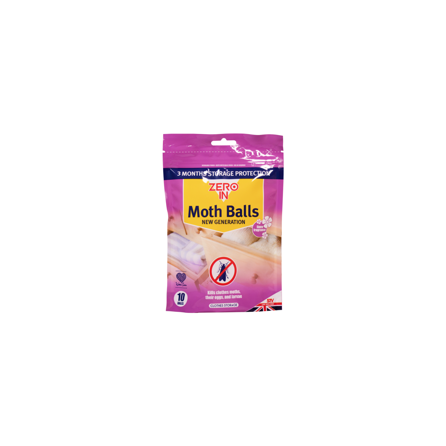 New generation clothes moth balls effectively kill moths, larvae and eggs. Protects clothes in wardrobes, cupboards, drawers, suitcases and airing cupboards.