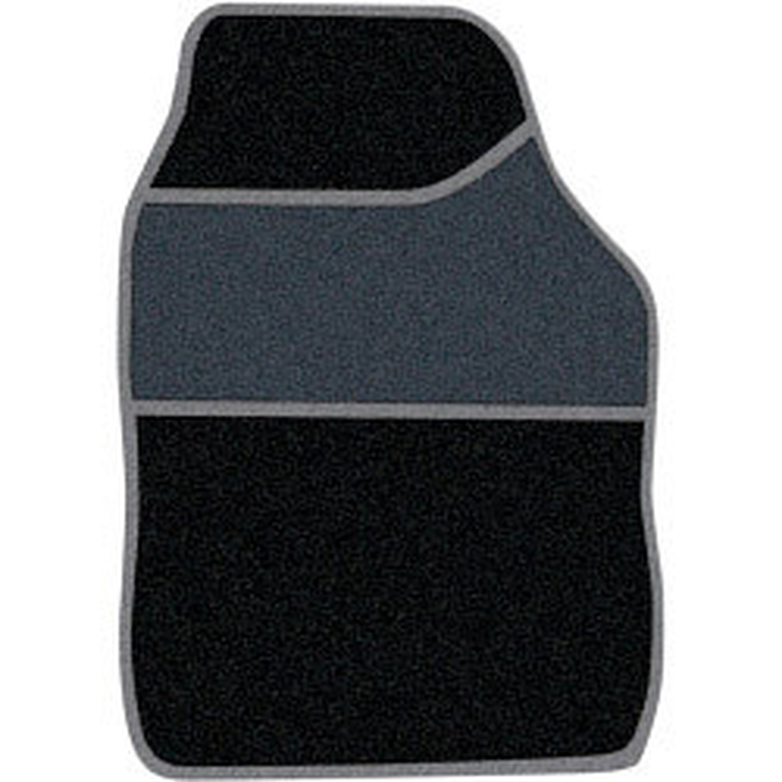 Streetwize Velour Carpet Mat Sets with Coloured Binding - 4 Piece Black/Grey