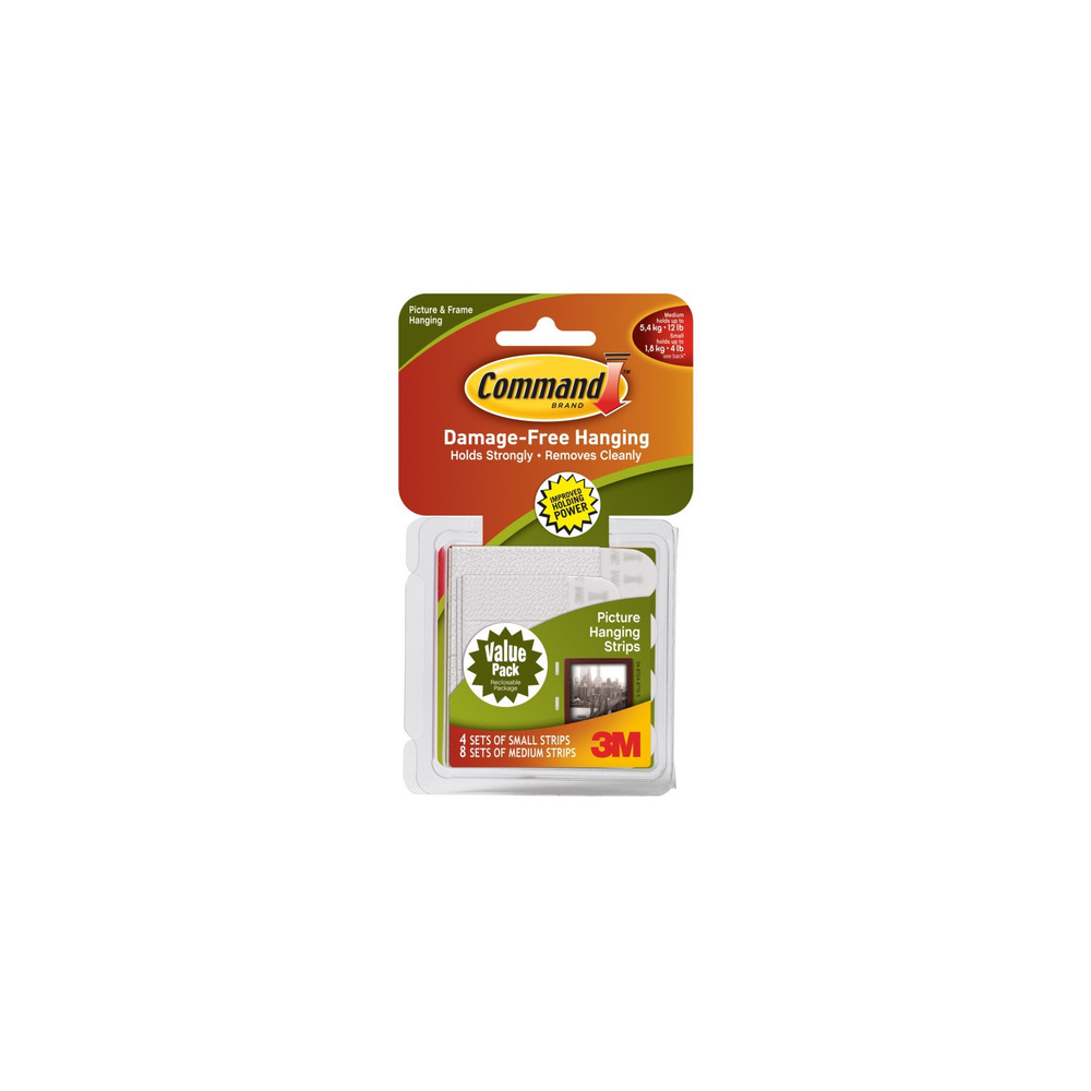Command Small and Medium Picture Hanging Strips Value Pack 4 Sets of Small Strips, 8 Sets of...