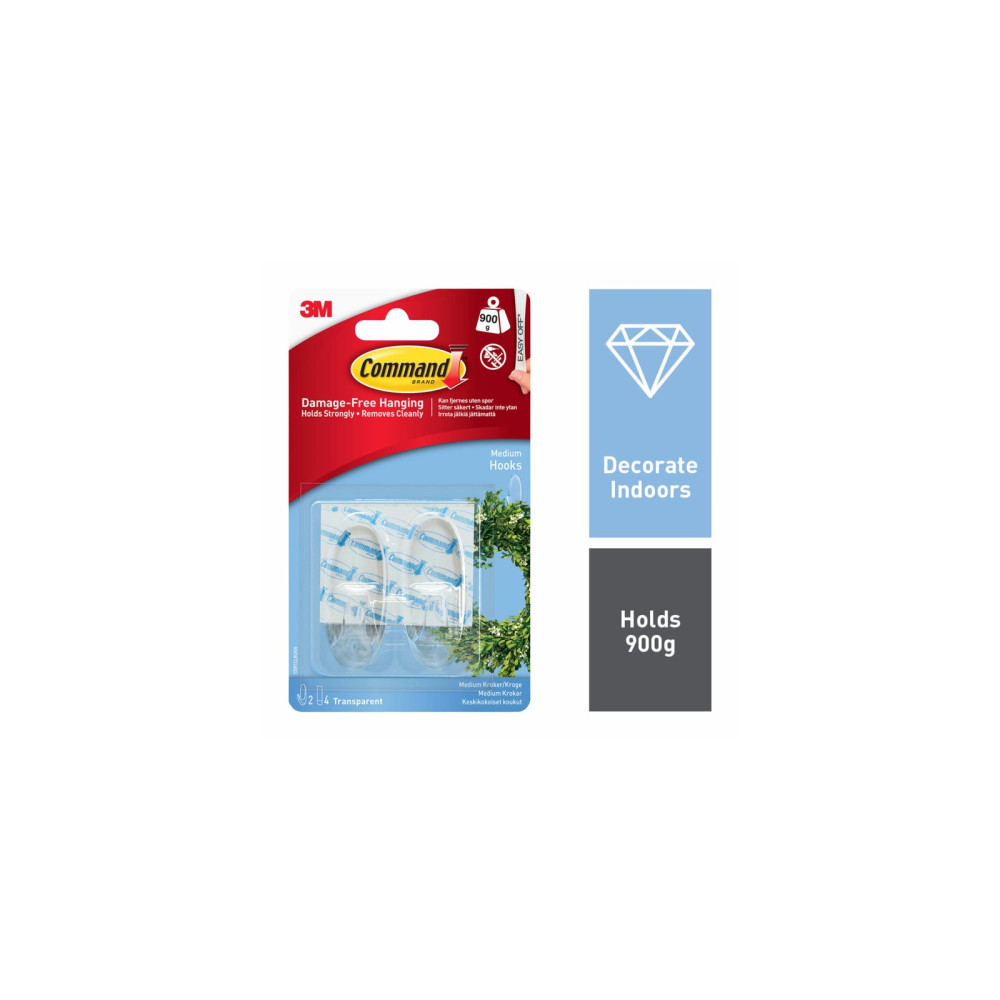Command Medium Clear Hooks with Clear Strips 2 Medium Hooks, 4 Medium Strips