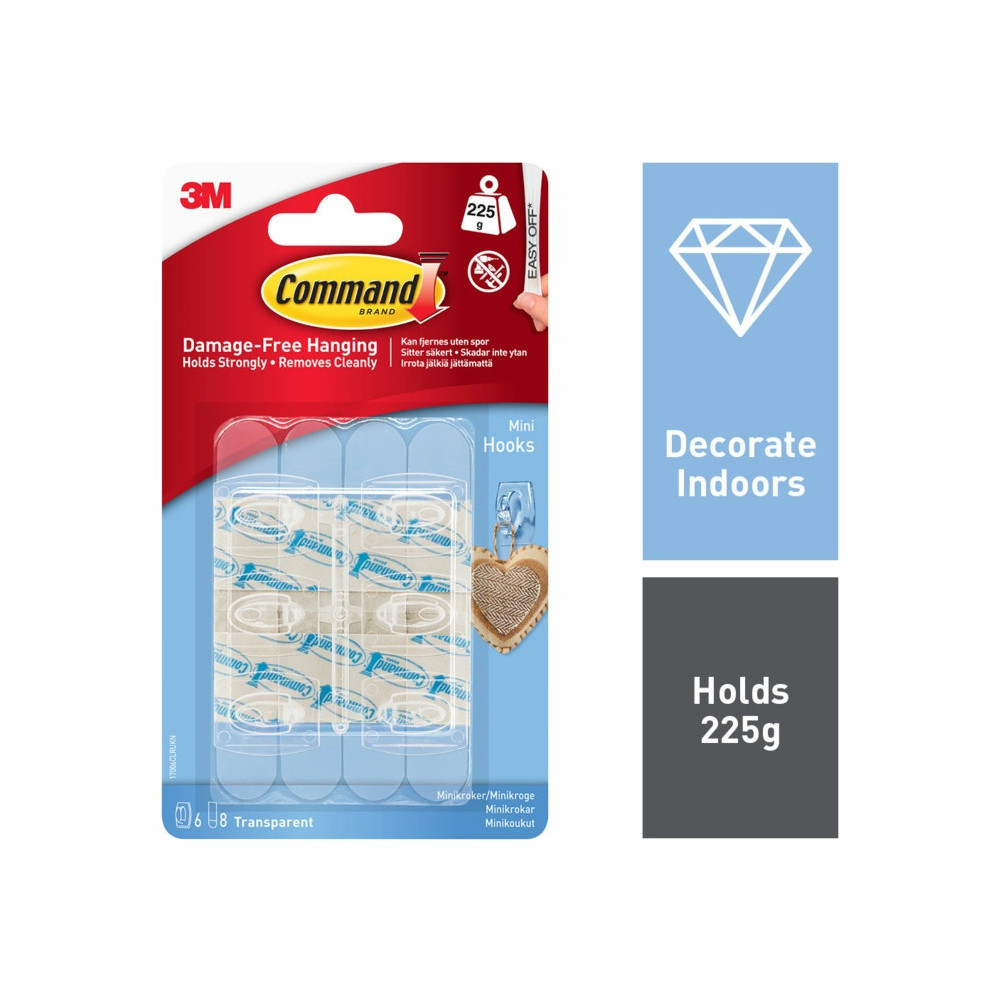 Command Mini Clear Hooks with Clear Strips 6 Hooks, 8 Small Strips